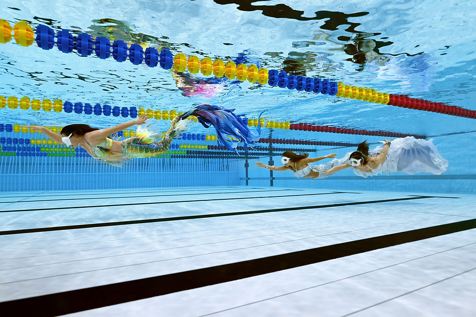 Leading by Mermaid Instructor, for mermaid diver to independently practice diving techniques and train at a depth of 6 meters, consolidating their mermaid skills.